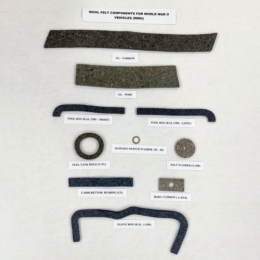• Felt components manufactured for World War 2 era vehicle restoration and maintenance